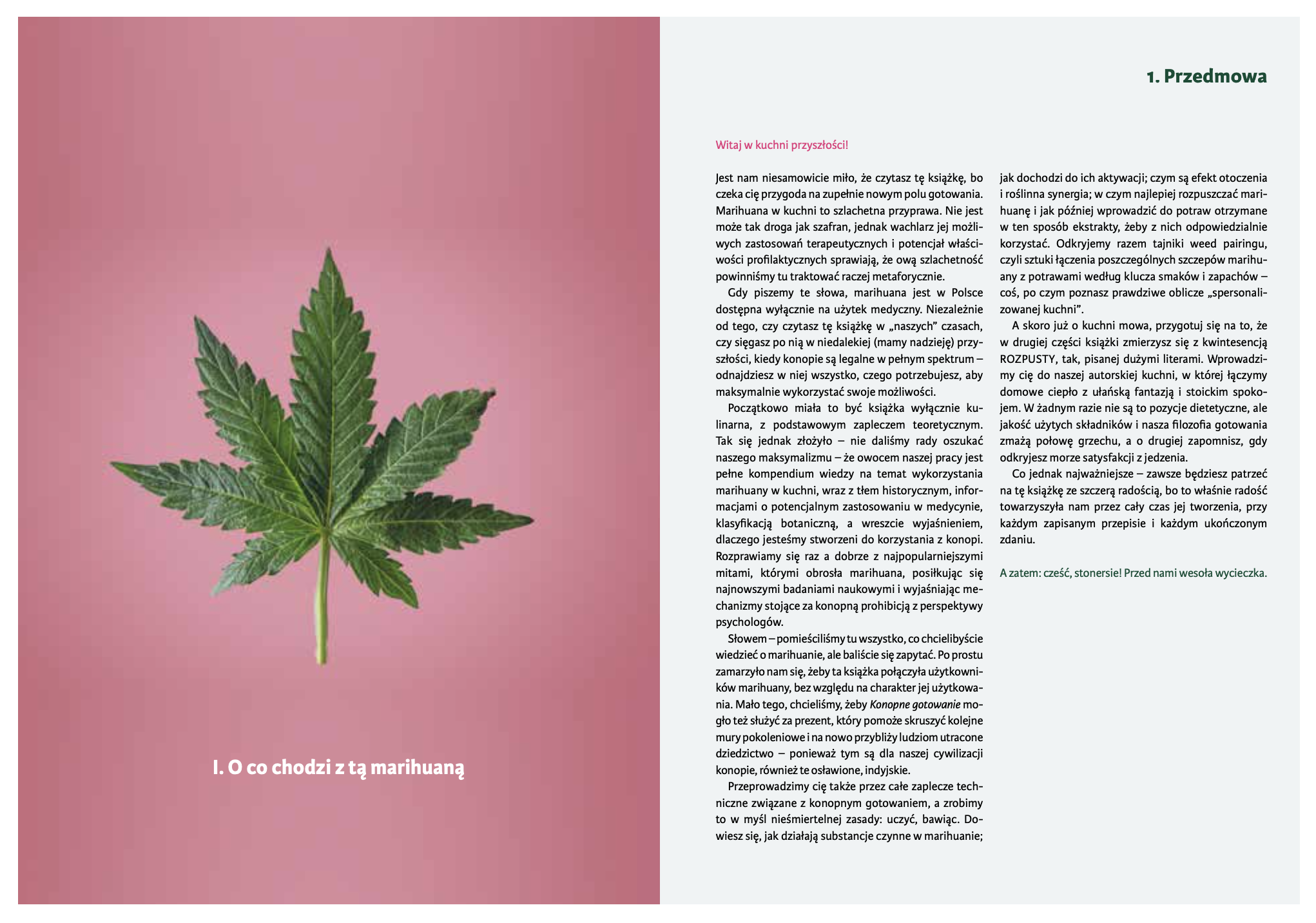 Oprócz przepisów kulinarnych, “Konopne gotowanie” to także 50 stron solidnego, merytorycznego wstępu, który pomoże Ci poznać lepiej konopie, niezależnie od tego, czy dopiero zaczynasz, czy korzystasz z niej “od zjarania dziejów”. Wszystko podane w usystematyzowany i lekki sposób.
